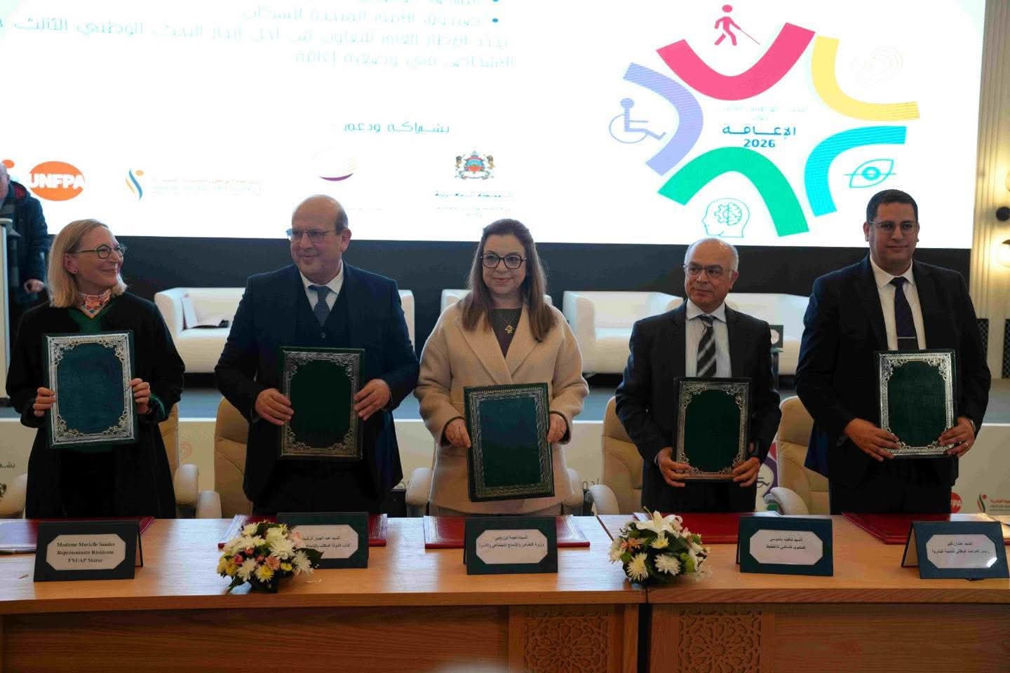 وتم بهذه المناسبة التوقيع على اتفاقية شراكة لإنجاز البحث الوطني الثالث حول الإعاقة، التي تجمع بين وزارة التضامن والإدماج الاجتماعي والأسرة، وكتابة الدولة المكلفة بالإدماج الاجتماعي، والمندوبية السامية للتخطيط، والمرصد الوطني للتنمية البشرية، وصندوق الأمم المتحدة للسكان (UNFPA)، في إطار شراكة مؤسساتية متعددة الأطراف تؤسس لتدبير منسق لمختلف مراحل البحث من الإعداد إلى التنفيذ، ثم تقاسم النتائج وتثمينها.