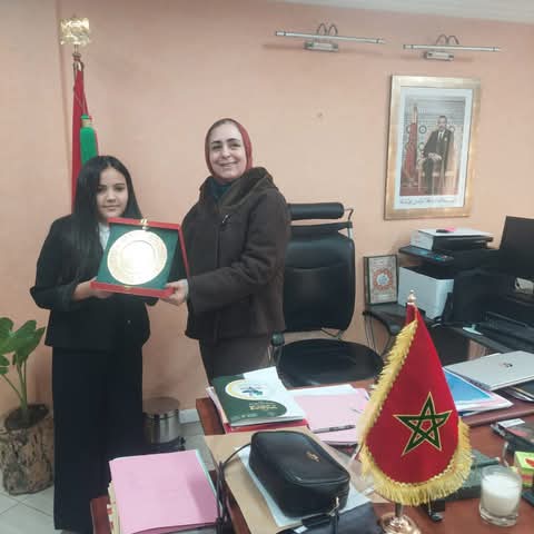 وخلال هذا اللقاء، نوهت المديرة بهذه المبادرة الواعدة، معبرة عن اعتزازها بقدرة المتعلمات والمتعلمين على الإبداع والابتكار، ومؤكدة على أهمية تشجيع المواهب الناشئة داخل المؤسسات التعليمية. وفي هذا السياق، تم منح التلميذة درعا تكريميا تقديرا لمجهودها وتحفيزا لها على مواصلة مسارها الإبداعي.