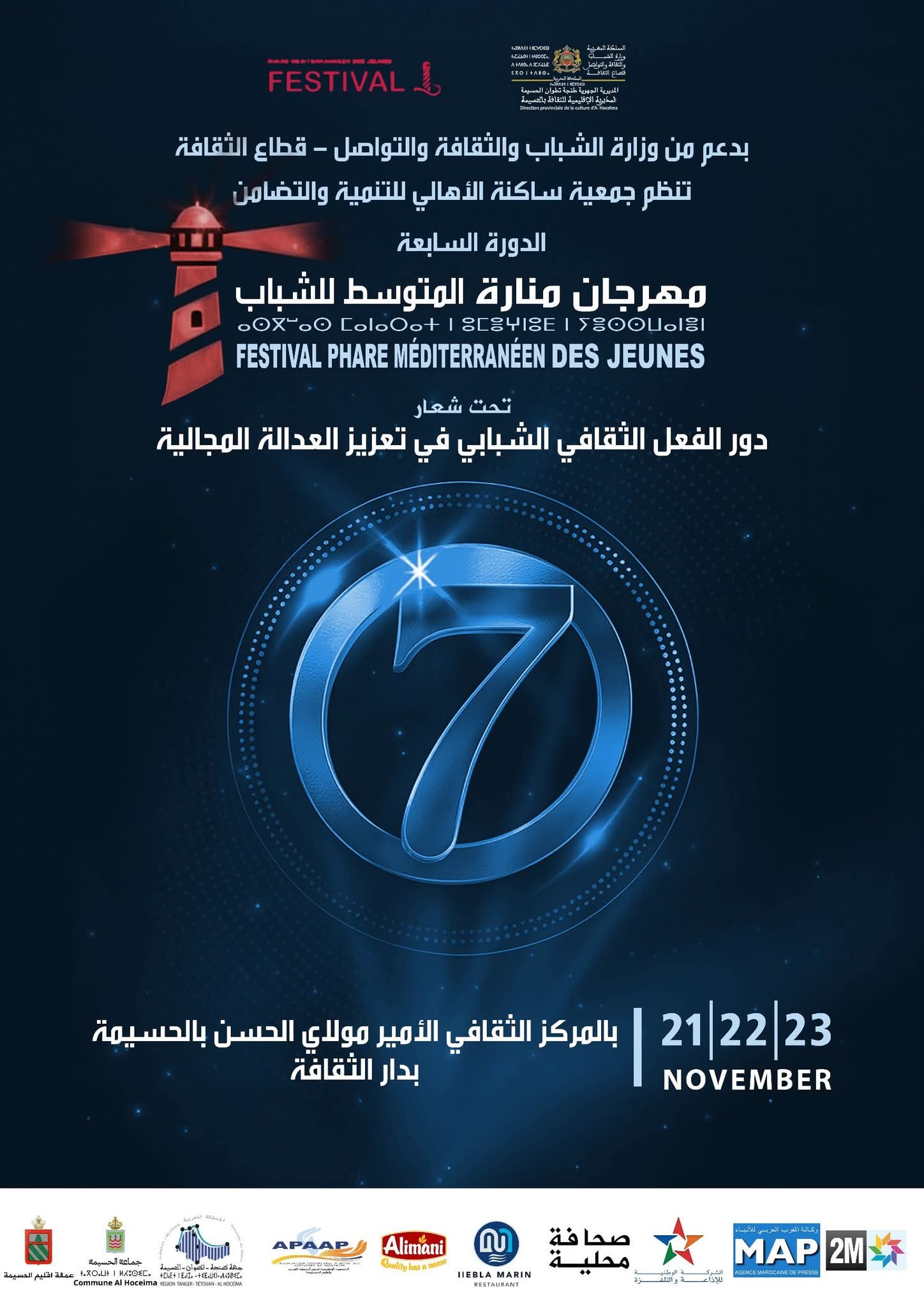تستعد مدينة الحسيمة لاحتضان فعاليات النسخة السابعة من مهرجان منارة المتوسط، وذلك خلال الفترة الممتدة من ال 21 الى 23 من نونبر الجاري، تحت شعار: “دور الفعل الثقافي الشبابي في تعزيز العدالة المجالية”.