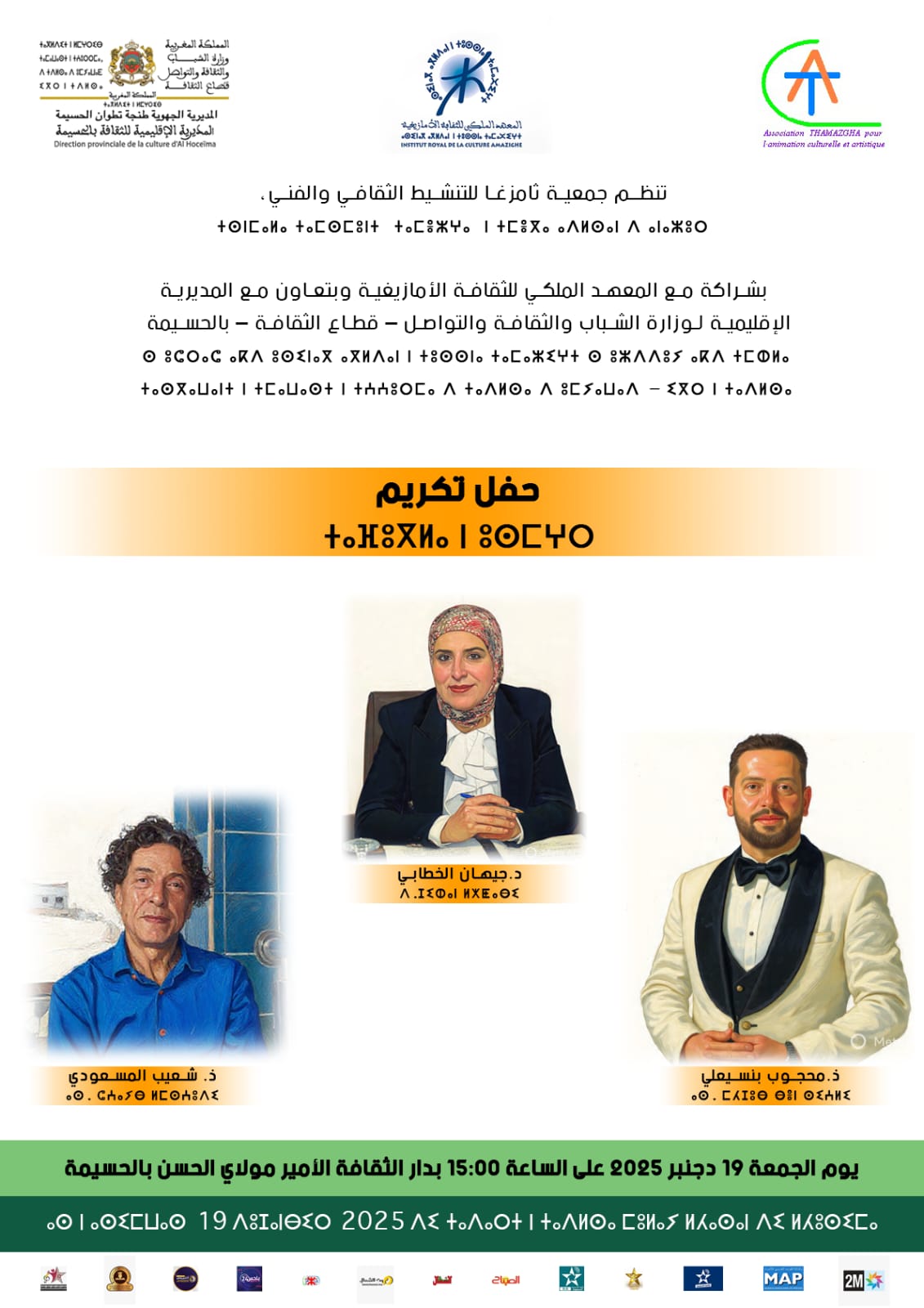 ستقام هذه الفعاليات في تمام الساعة الثالثة بعد الزوال من يوم الجمعة 19 دجنبر 2025 بدار الثقافة مولاي الحسن بمدينة الحسيمة .